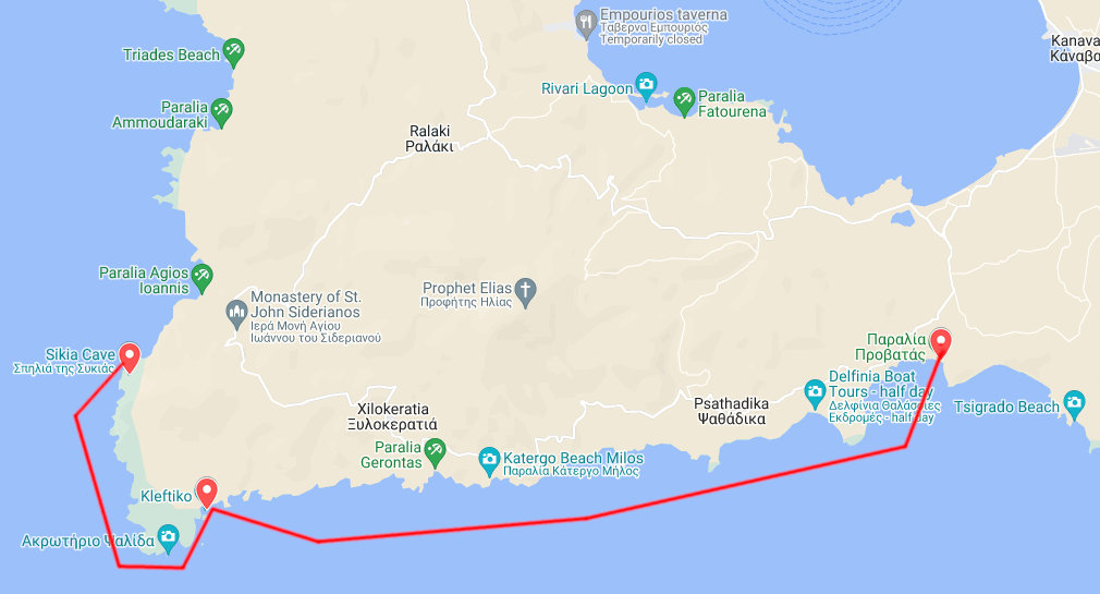 Σε αυτή τη διαδρομή θα ξεκινήσουμε από την παραλία του Προβατά, θα συνεχίσουμε δυτικά προς το μαγευτικό Κλέφτικό και θα καταλήξουμε στην μοναδική σπηλιά Συκιά.
